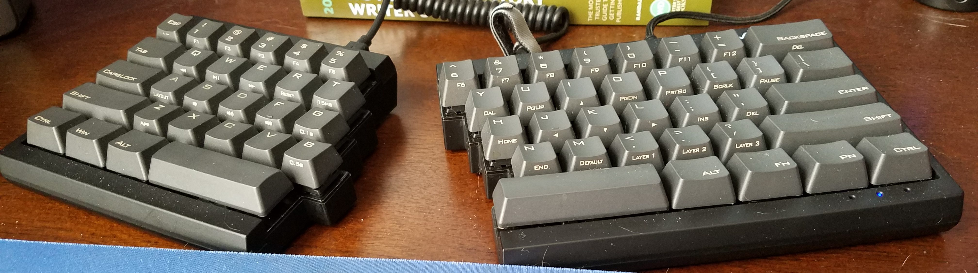 But you may recall how I am old. As time went on and I purchased a house and wrote more and more, I began to realize that ergonomics were really becoming an issue. Recurring tendinitis was beginning to afflict both of my wrists, badly enough that I went ahead and purchased an ergonomic keyboard for work.