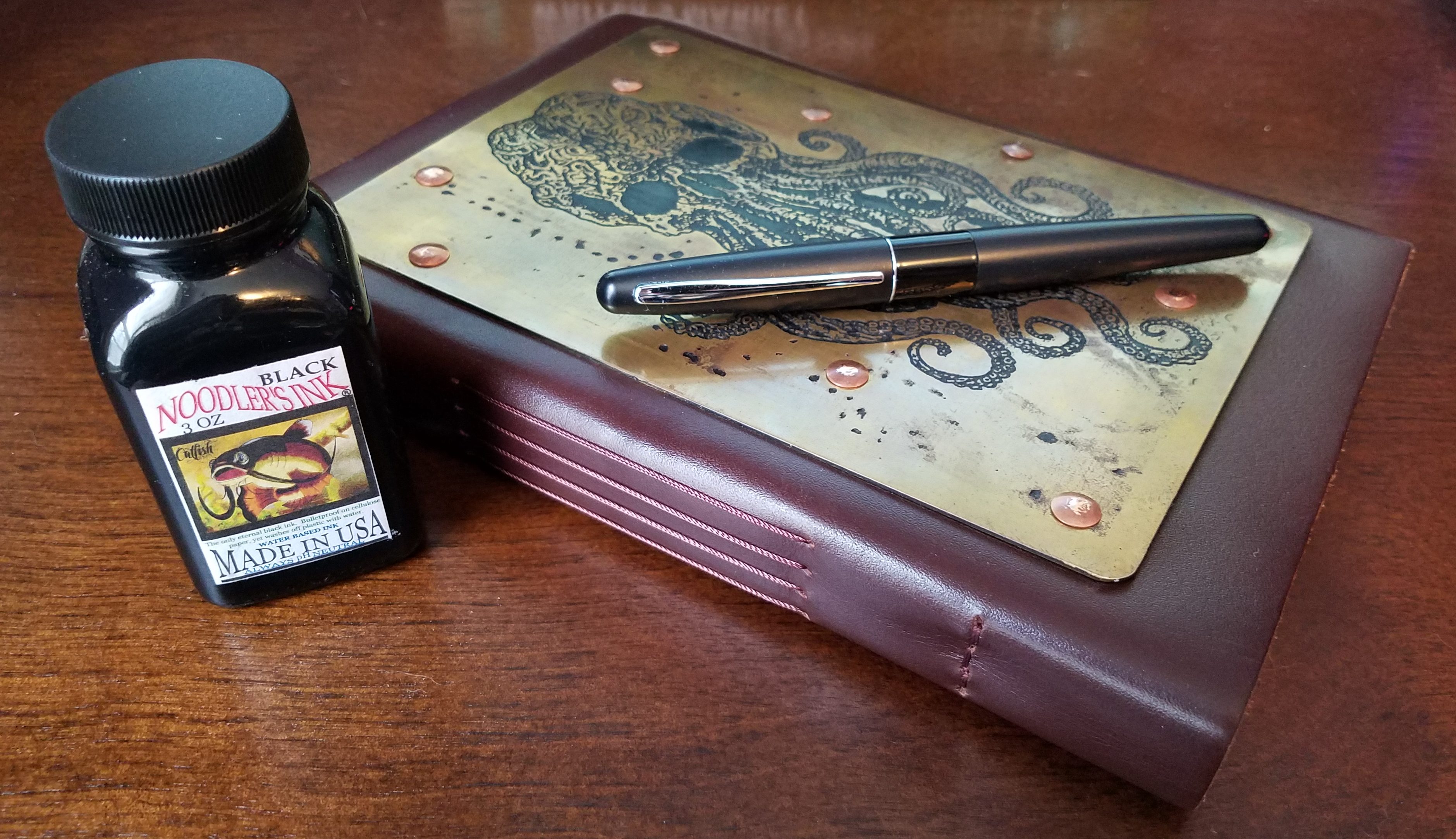 I had no idea a jam like this existed until Christmas of 2015. That’s when I received one of these journals from my dad as a gift, and it’s absolutely gorgeous if you’re into nightmare visions of cephalopod elder gods (which, obviously, I am). I was forced to hold onto it, blank, until I finally managed to finish filling out another journal that had been given to me as a gift that same Christmas. Which, you know. Hashtag writer problems.