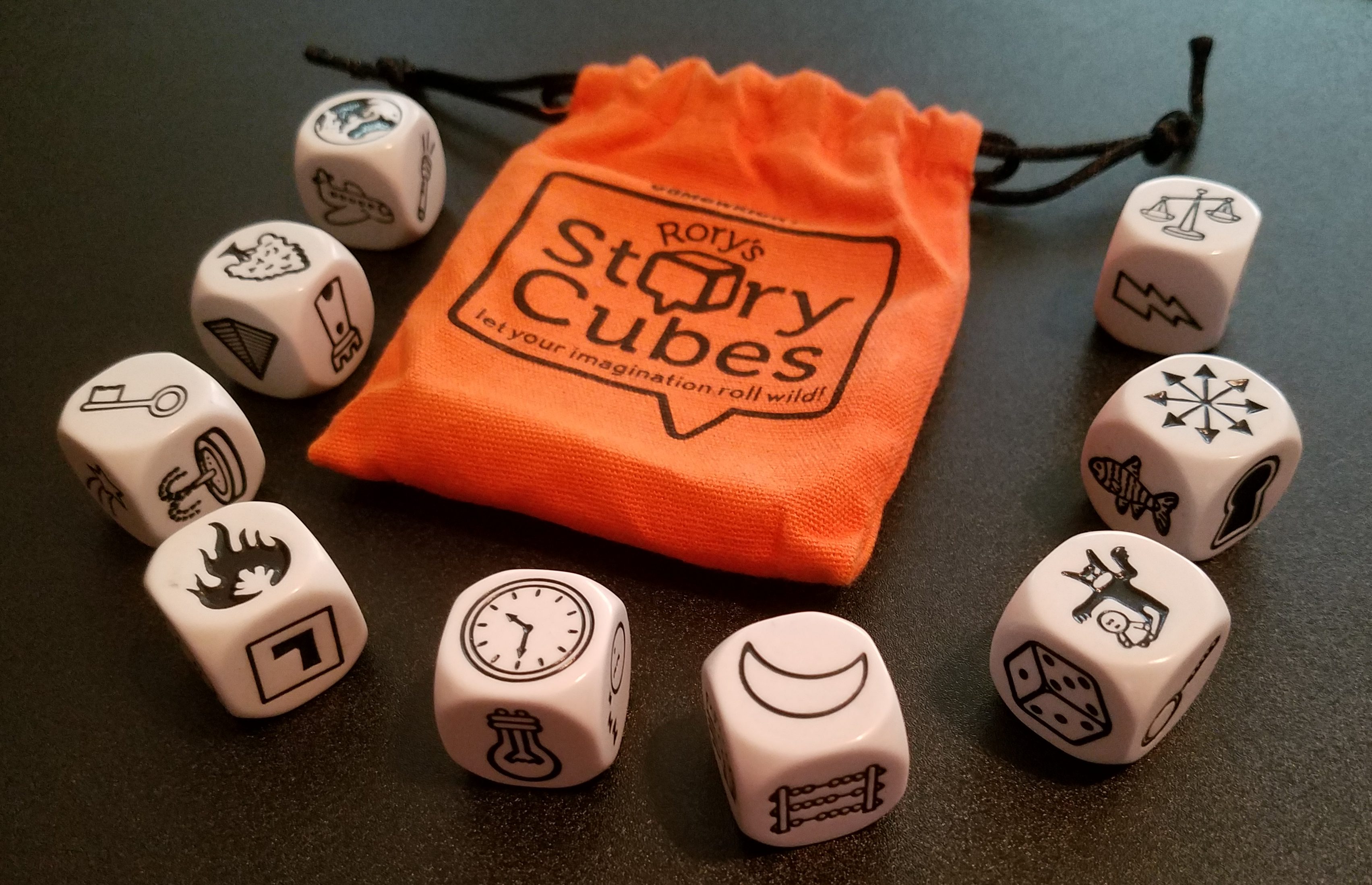 Before you ask, I’m not getting paid for this. I just fucking love Rory’s Story Cubes. It’s proven to be a uniquely effective tool for me when I just don’t know where to go. Probably because I’m a visual person, and having a set of images gives me something to kick off from, like the seed value used to generate the nightmarescape of a game of Dwarf Fortress.